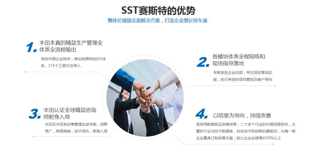 賽斯特集團(SST)是豐田為背景的一家致力于企業(yè)管理咨詢、培訓服務(wù)為主的國際化管理咨詢機構(gòu),依托于精益發(fā)源地豐田公司為背景的專家團隊,專業(yè)從事精益生產(chǎn)培訓和咨詢服務(wù)的管理咨詢機構(gòu),中國本土唯一一家融合日本豐田,北京現(xiàn)代,韓國三星等專家為一體的咨詢機構(gòu)。旗下?lián)碛校禾旖蛸愃固仄髽I(yè)管理咨詢公司,天津眾益天成管理咨詢公司,北京冠群精益管理咨詢公司,天津精益智能咨詢有限公司等四家分支機構(gòu)。 |